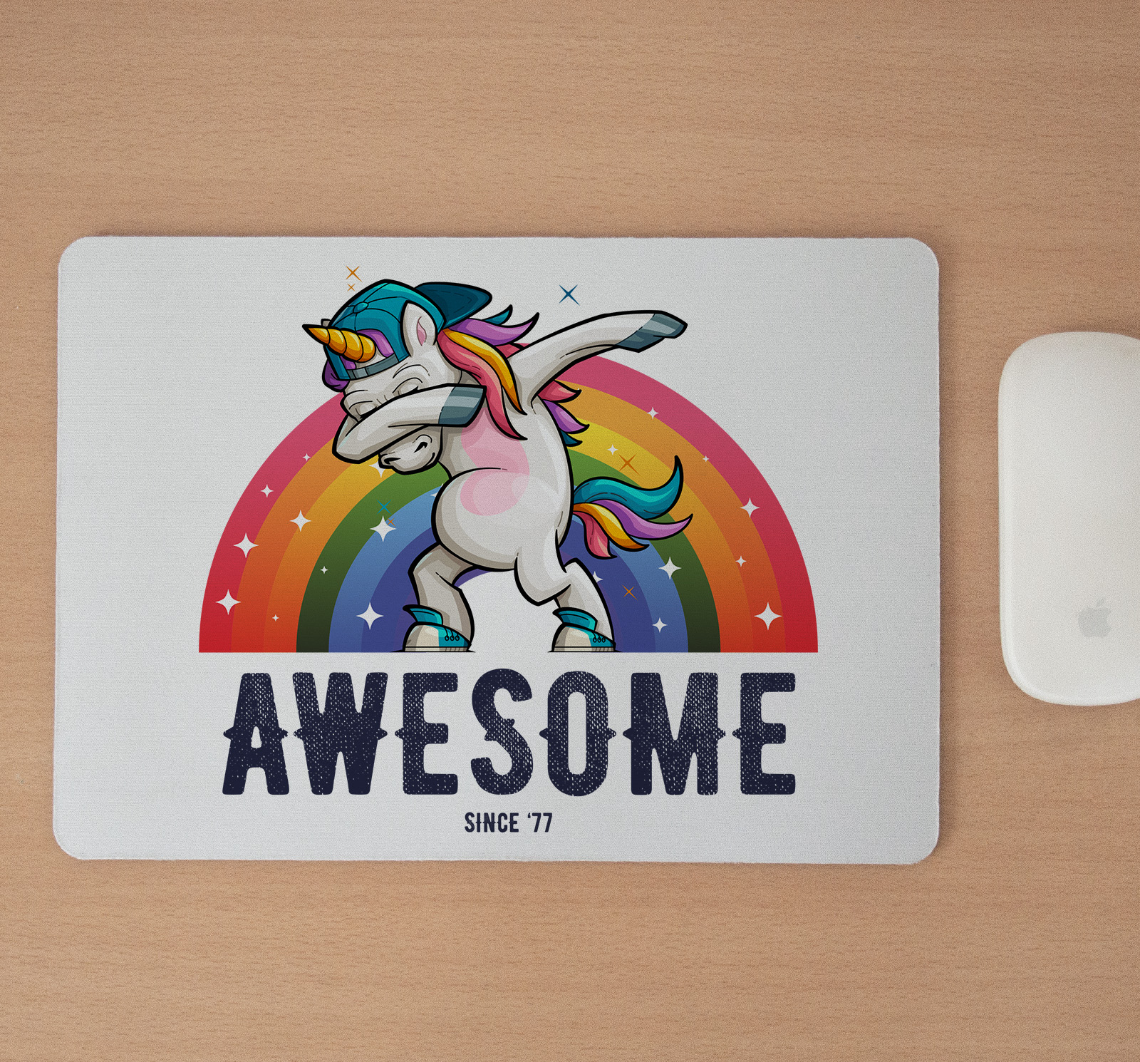Mousepad cu mesaj aniversar, Unicorn Awesome Since
