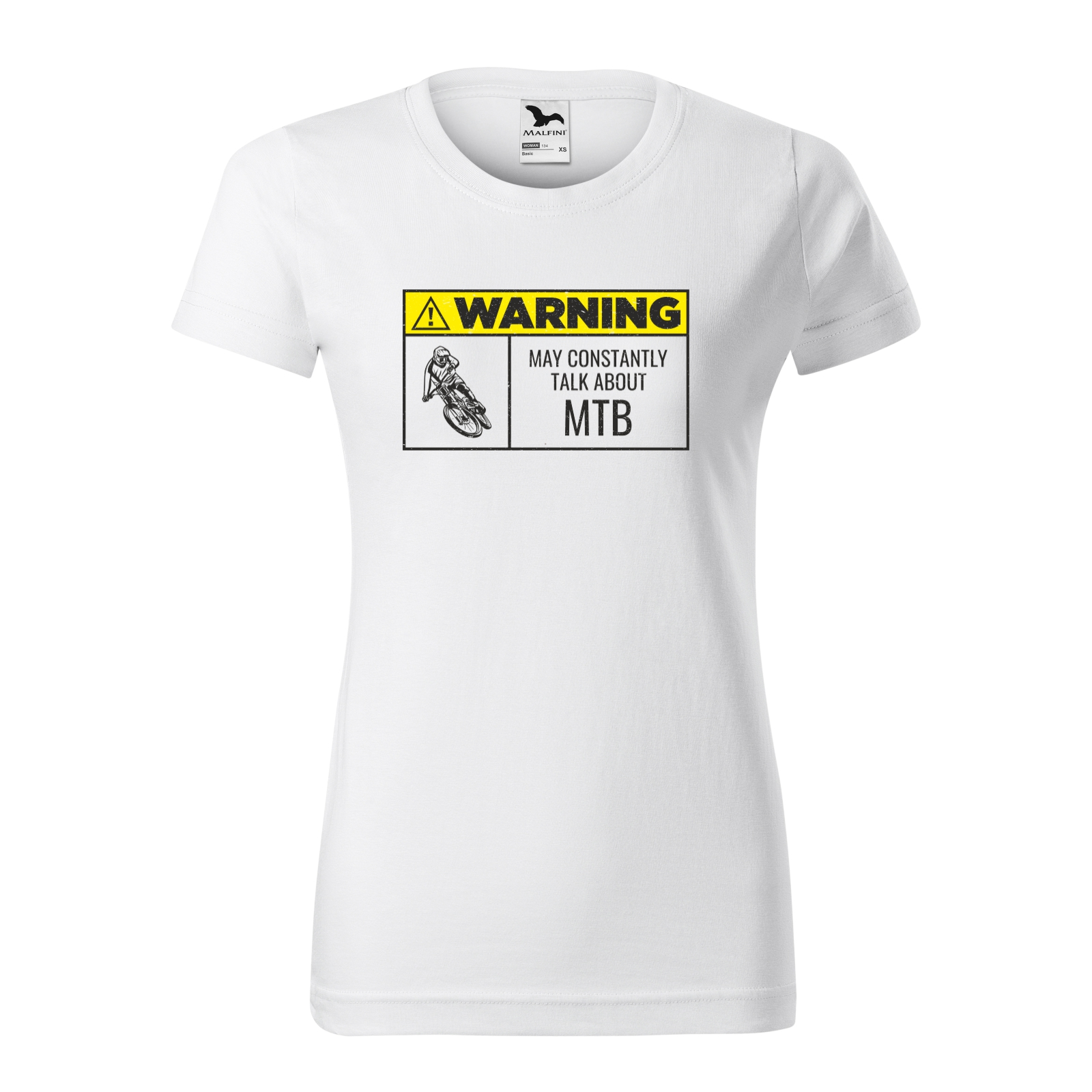 Tricou alb/negru, cadou pentru biciclisti MTB, Warning May Constantly Talk About MTB