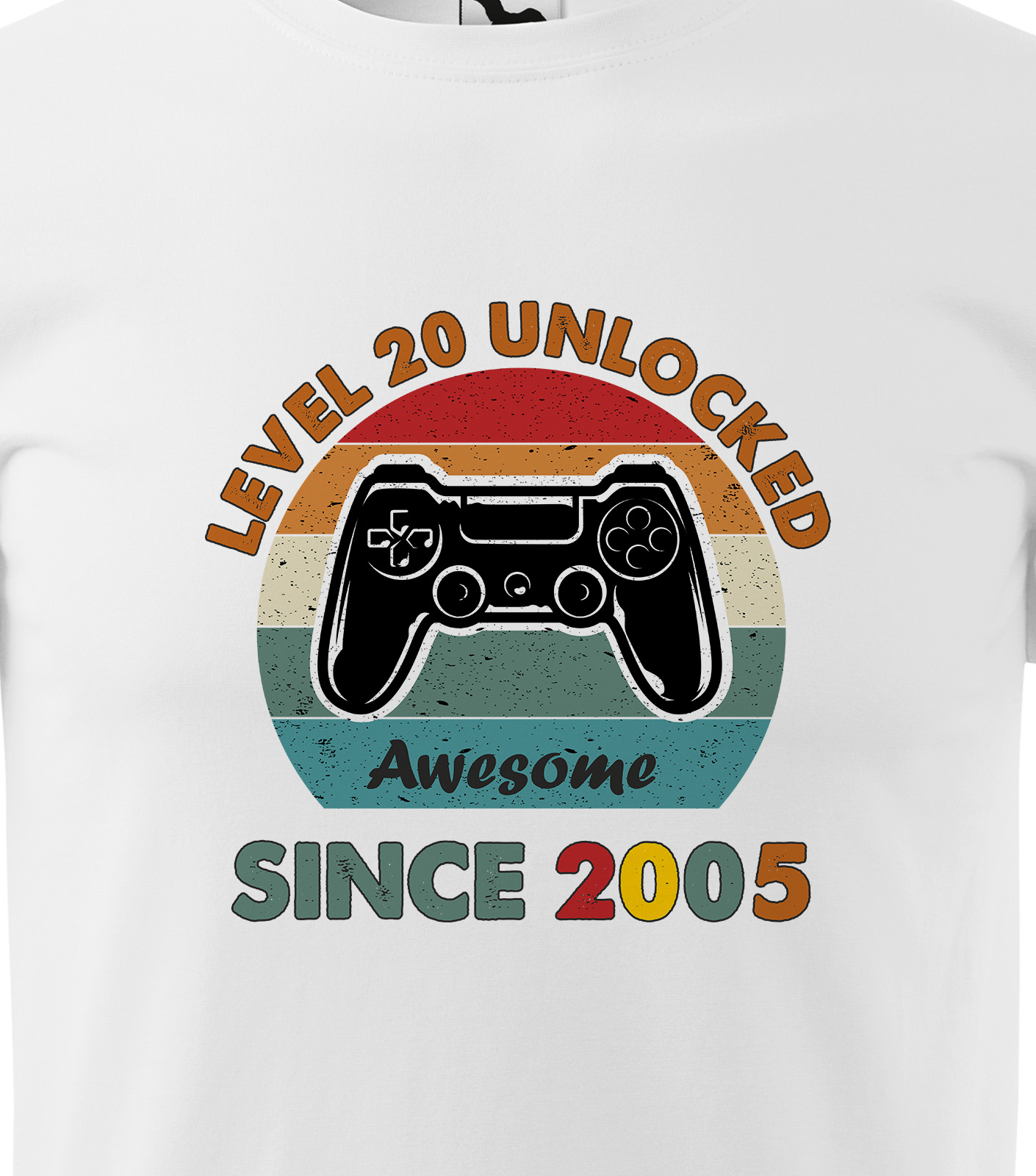 Tricou personalizat 20 ani, AWESOME level unlocked