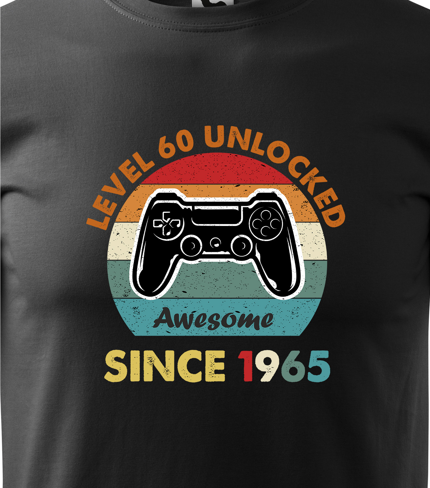 Tricou personalizat 60 ani, AWESOME level unlocked
