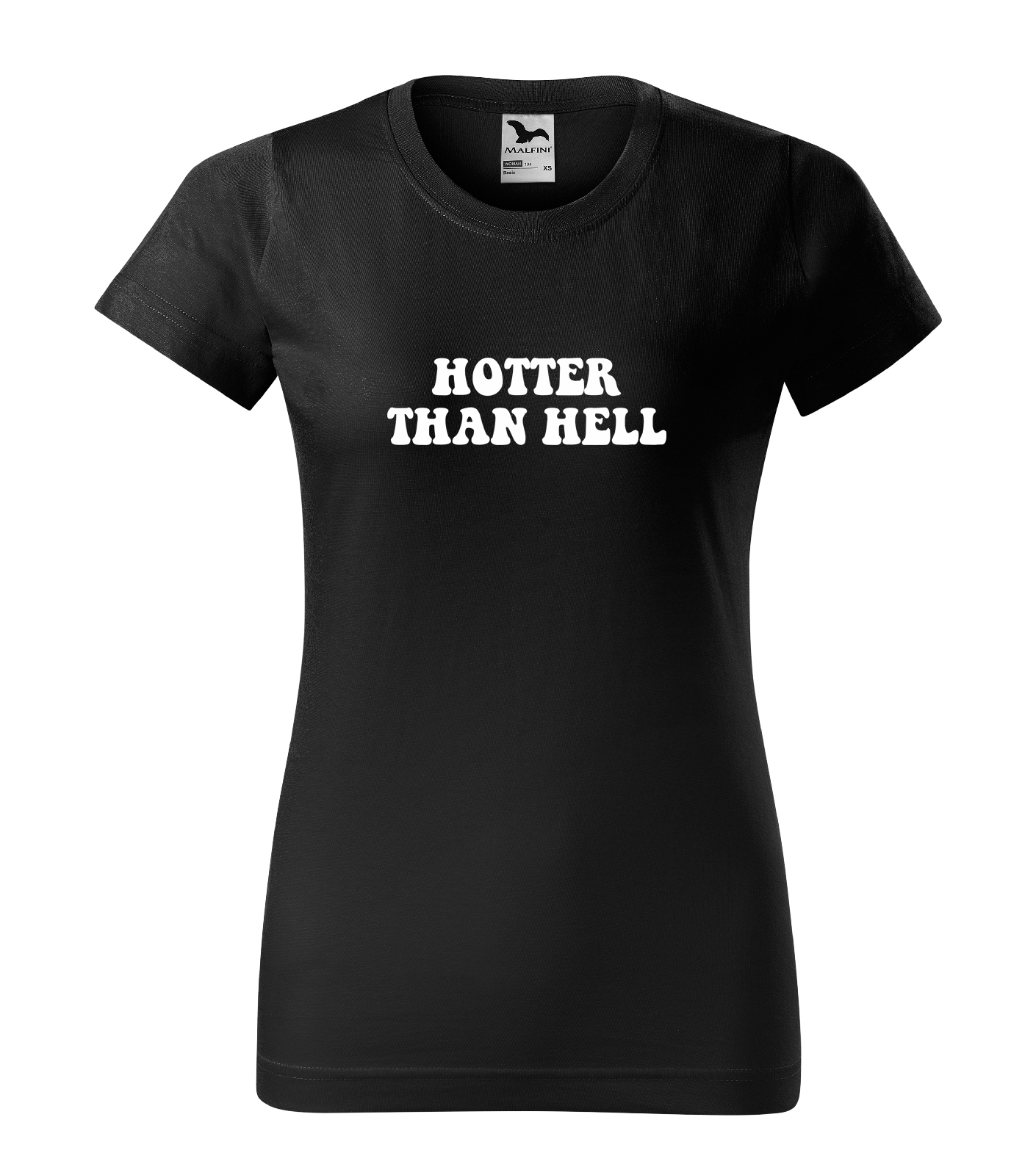 Tricou alb/negru cu mesaj, Hotter Than Hell