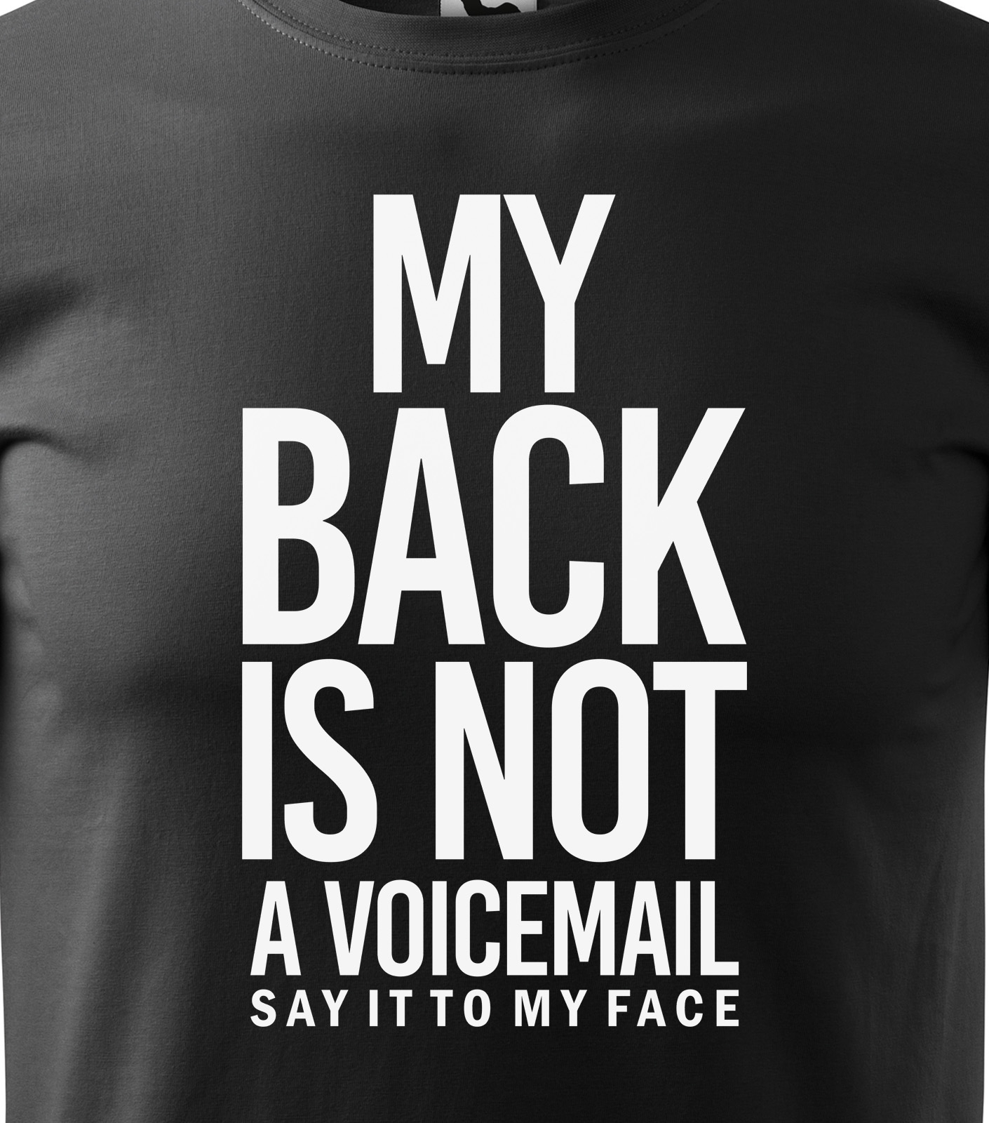 Tricou alb/negru cu mesaj, My Back is Not a Voicemail. Say it to My Face