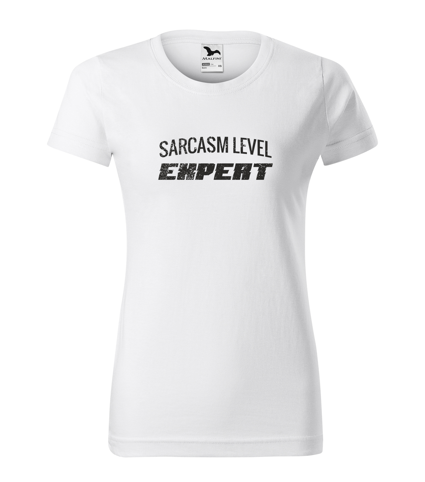 Tricou alb/negru cu mesaj, Sarcasm Level: Expert