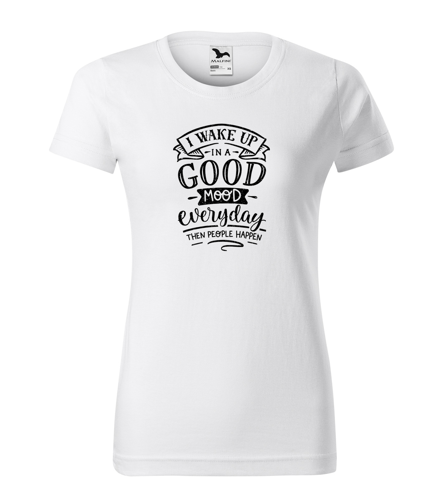 Tricou cu mesaj haios anti-social, idee de cadou, I Wake Up In a Good Mood, Then People Happen