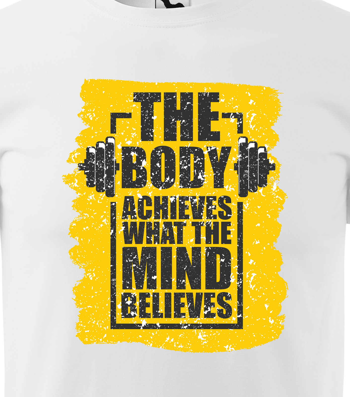 Tricou alb/negru, cadou pentru pasionatii de fitness/sala de forta, The Body Achieves What The Mind Believes