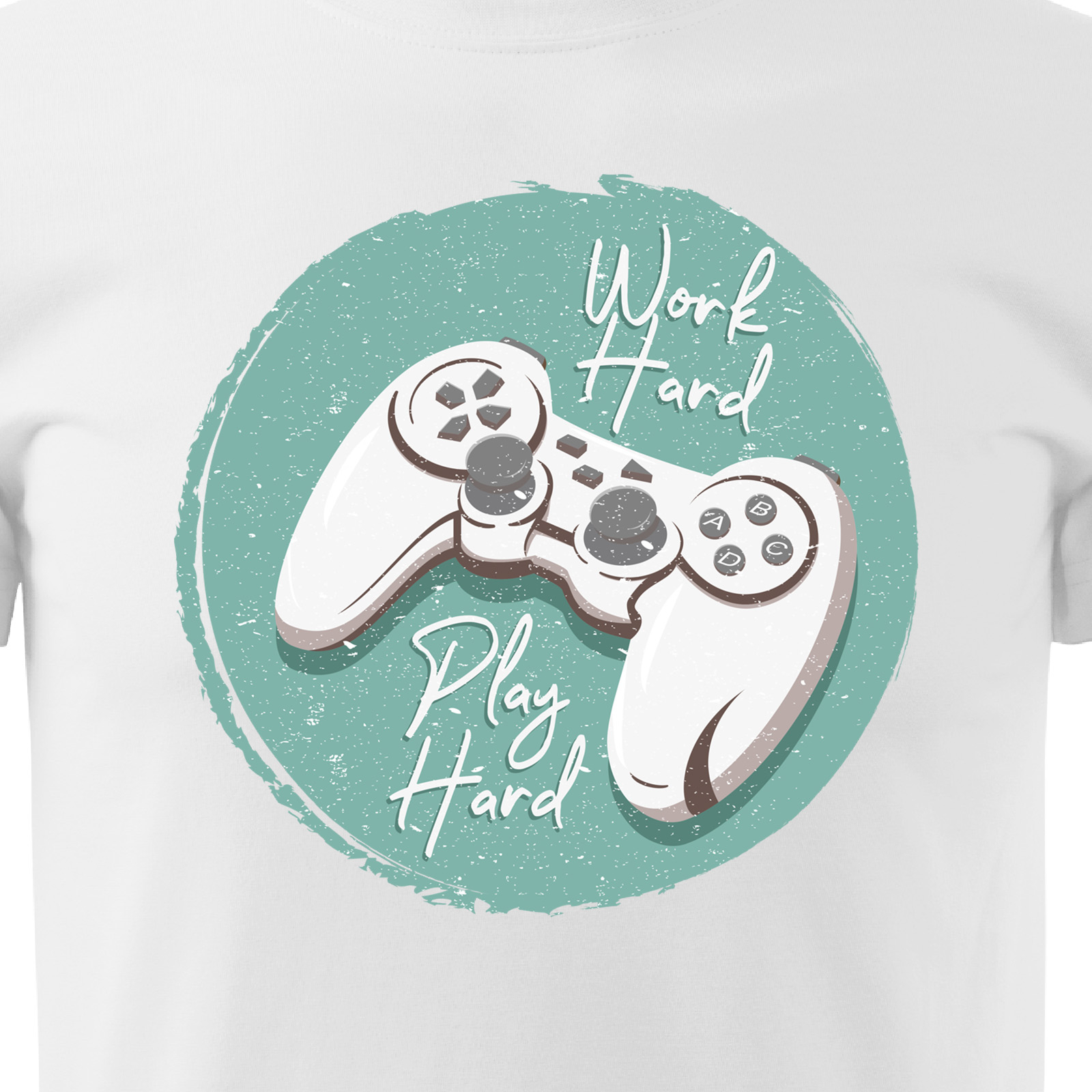 Tricou personalizat pentru gameri, cadoul perfect, Work Hard - Play Hard